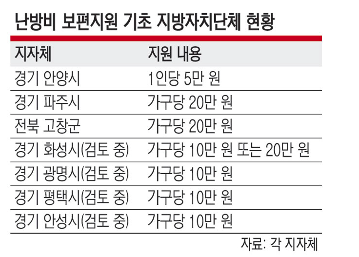 경기도 내, 모든 가구에 난방비를 지원하는 지자체입니다.