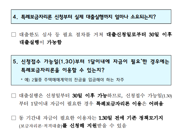 대출신청일로부터 30일 이후, 대출실행 가능합니다.