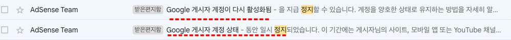 두번 정지될 때는 '이거 정말 영구 박탈 당하는 것 아닌가'... 했는데요. 한 달 뒤 정상적으로 광고가 붙더라고요.