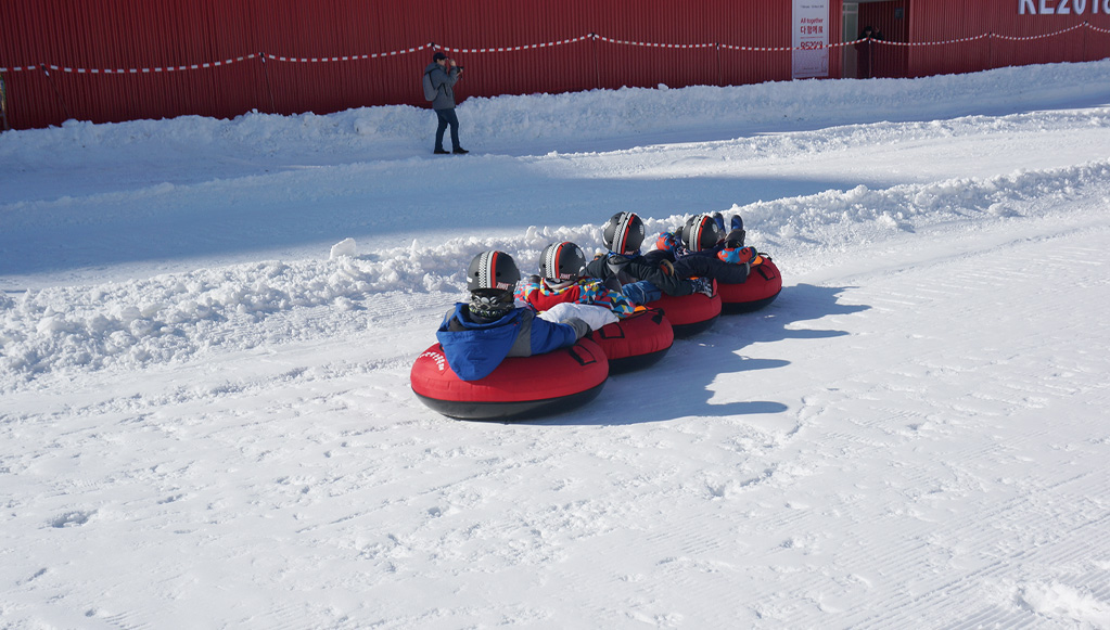 약 200미터의 긴 슬로프에서 가족들 모두 함께 줄줄이 이어진 썰매를 탈 수 있다고 합니다.