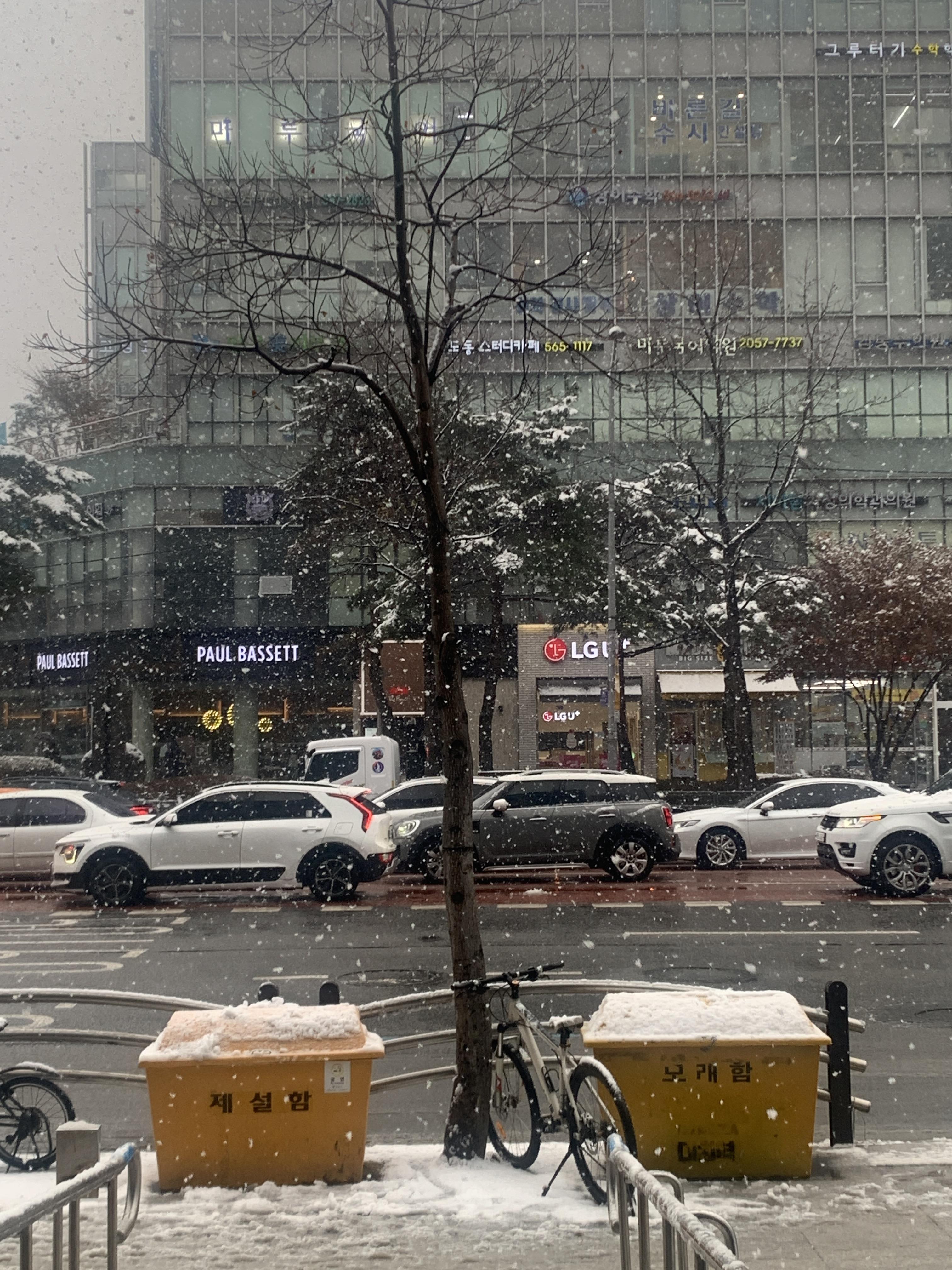 눈이 오니 좋긴한데... 학원가는 딸 데려다줘야 해서 도로교통 상황 먼저 걱정되더라고요.