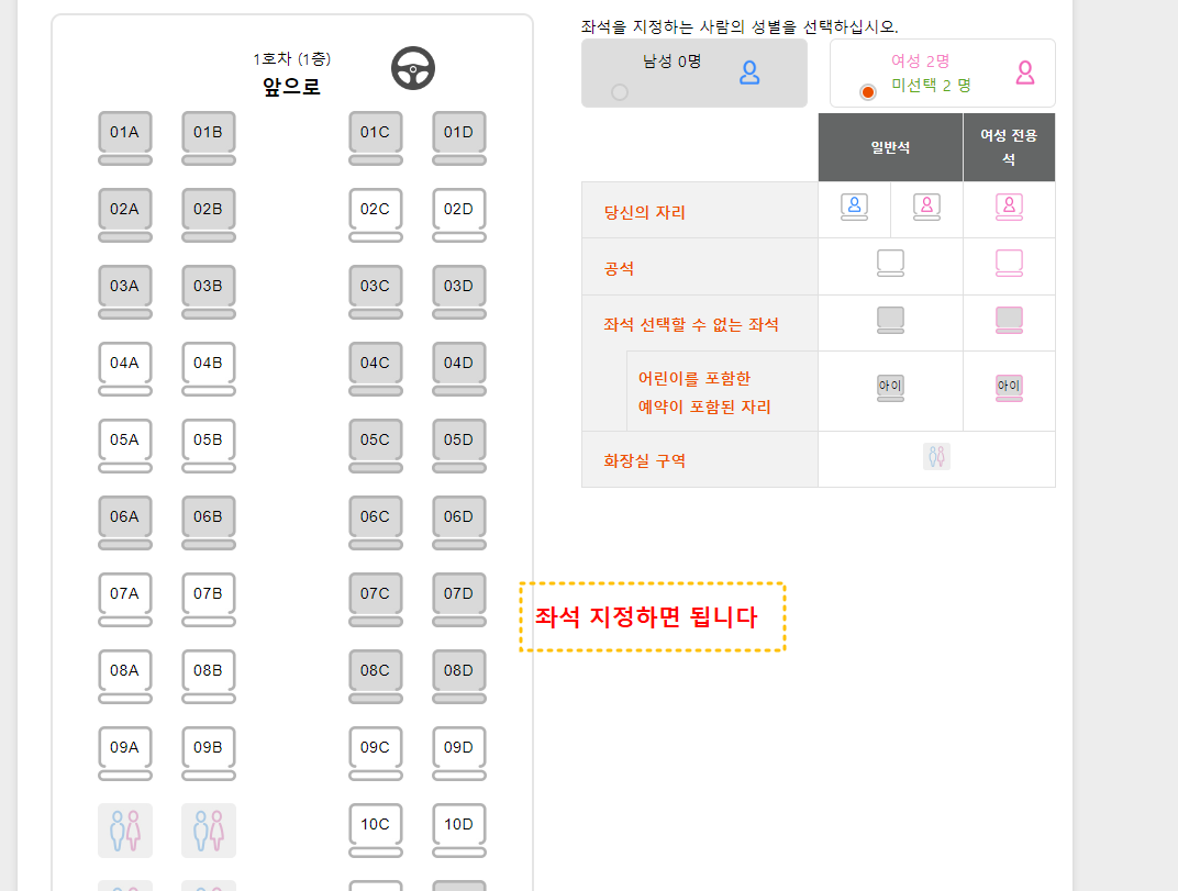 원하는 좌석도 이렇게 직접 지정하면 끝.
