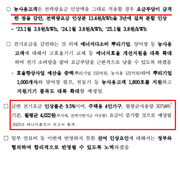 올 기준 월평균사용량(313 kwh)까지는 인상 전 전기요금을 적용한다고 밝혔습니다.