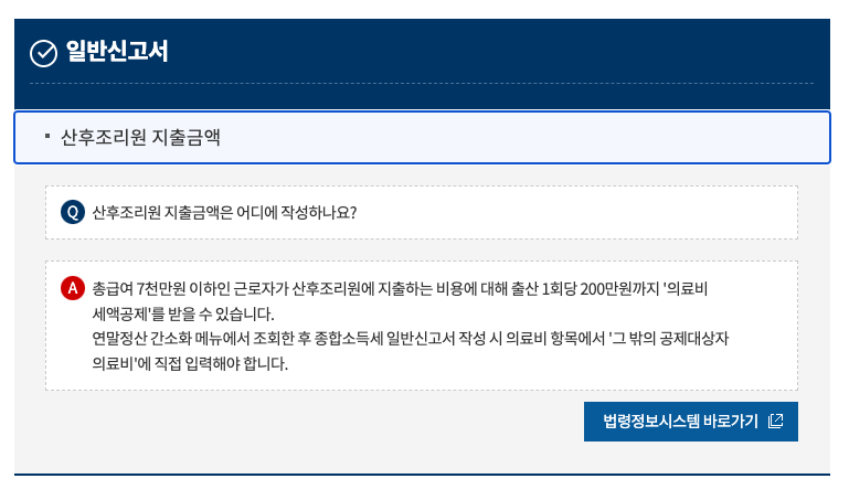 총급여 7천만원 이하인 근로자산후조리원에 지출하는 비용에 대해