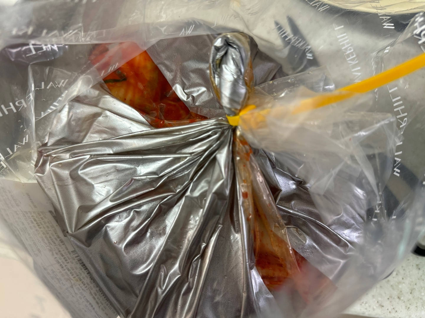 스텐 김치통에 담아 냉장고로...