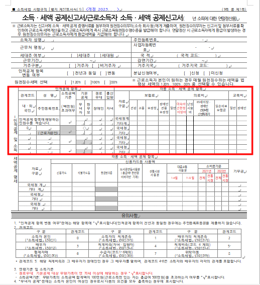 이 서식에 공제대상 가족을 일단 기재해야 합니다.