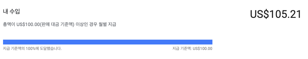 100불 이하는 수수료가 없다고 하는데, 구글은 100불이 넘어야 수익금으로 외화 입금이 가능하니