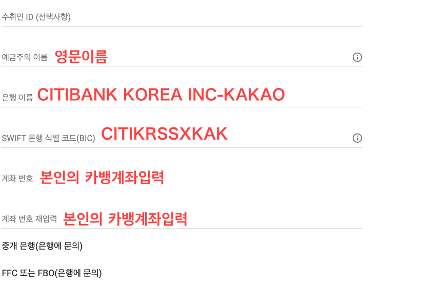 저처럼, 카카오뱅크를 통해 지급 계좌를 등록하시면 됩니다.
