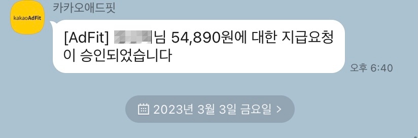 카카오애드핏은 석달만에 54,890원의 수익이 생겼고, 지급요청을 한 상태입니다.