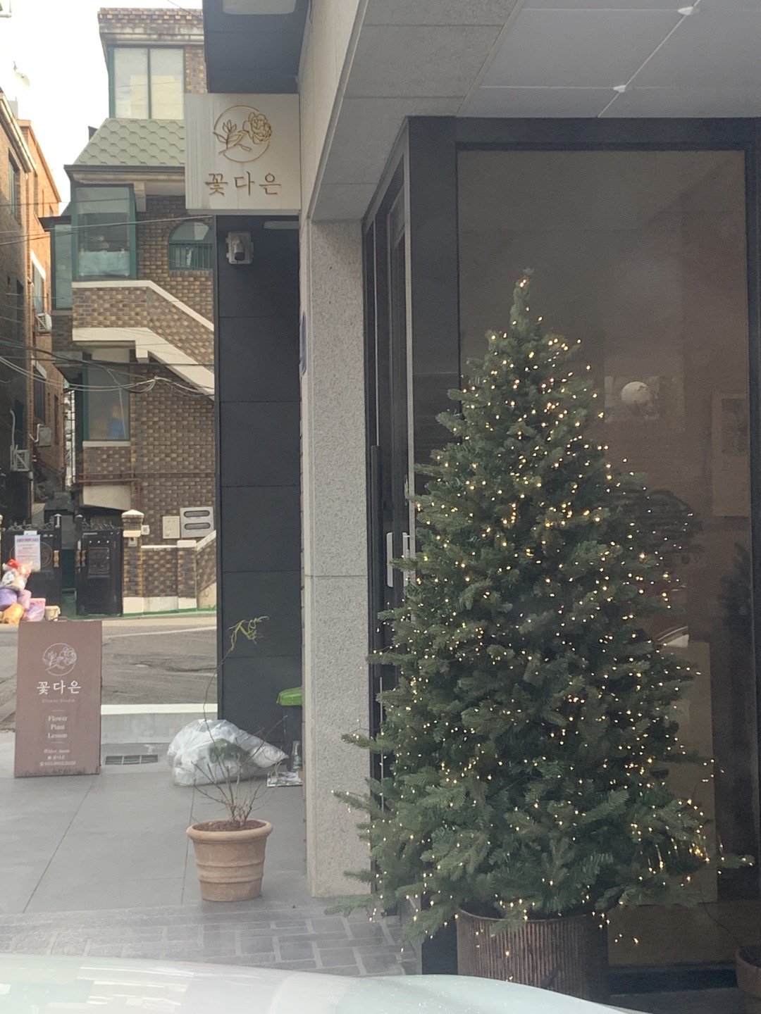 꽃다발 받아 들고 집에 가려는데, 예쁜 트리가 시선을 끄네요.