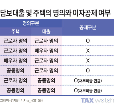 만약 공동명의 주택에 공동명의 대출이라면 근로자가 부담하는 채무 분담 비율만큼 공제됩니다.