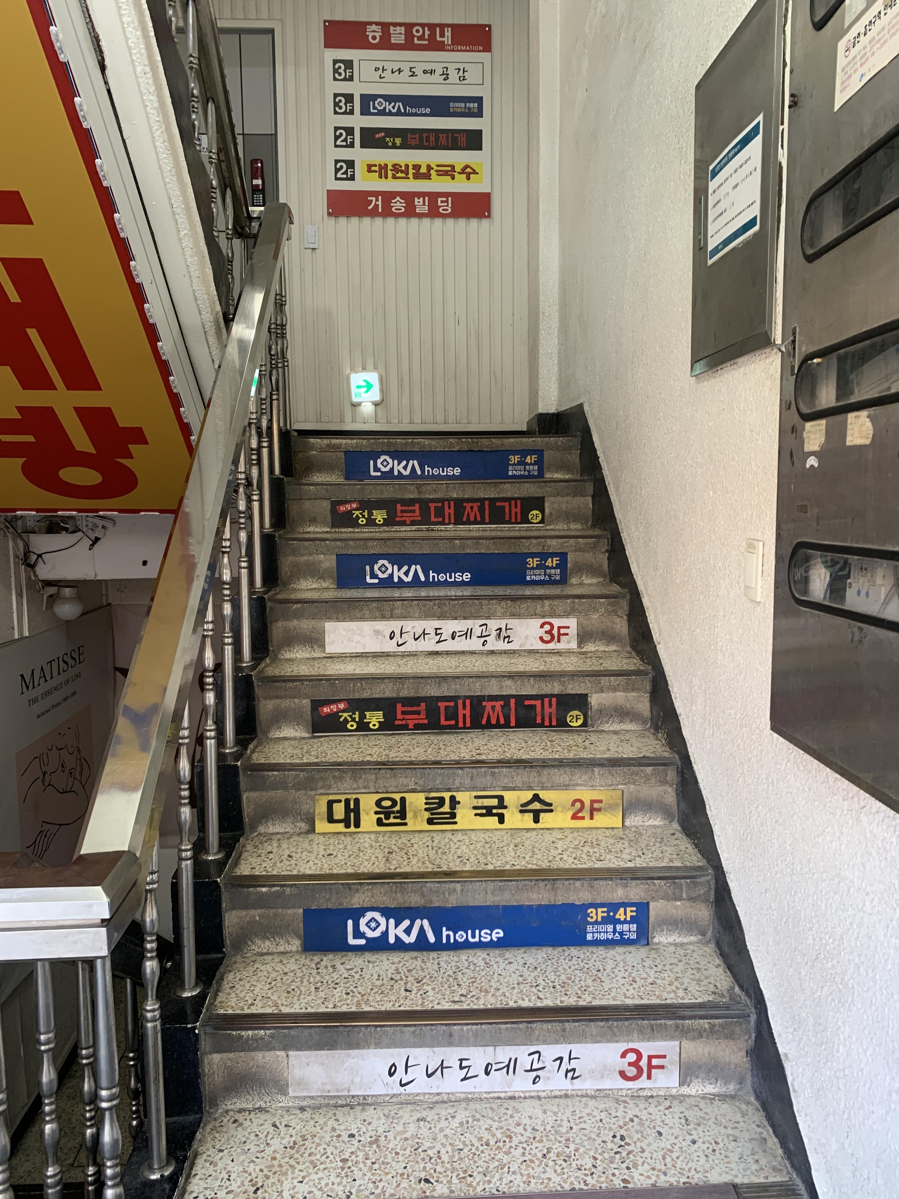 도저히 못 찾겠어서 우연히 올려다본 2층에 대원칼국수가 있더라고요.