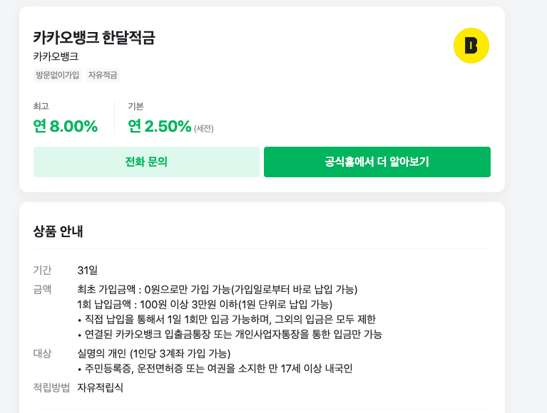 '카카오뱅크 한 달 적금'에 대해 화제를 옮겨보도록 하겠습니다.