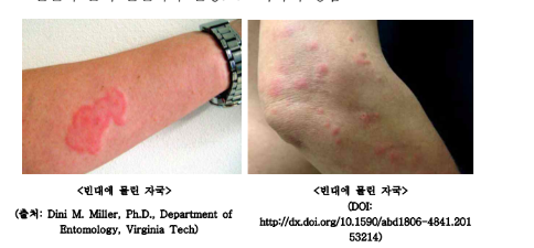 모기에 물린 것과는 확실히 다릅니다. 빈대에 물리면 이렇게 된다고 하니 참 공포스럽네요.